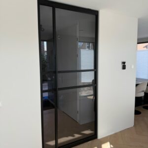 5. Duurzaamheid en stabiliteit De stalen profielen en stevige scharnieren maken de deur robuust en duurzaam, zodat je jarenlang plezier hebt van een deur die tegen een stootje kan.