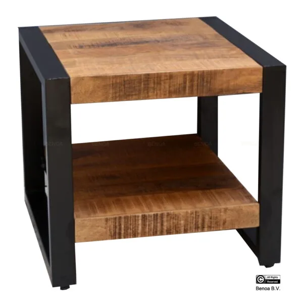 De Bas bestaat uit een combinatie van staal met een zwarte poedercoating en mangohout met een naturel finish, welke hem een warme uitstraling geeft. Deze serie heeft een mooie balans tussen staal en hout.