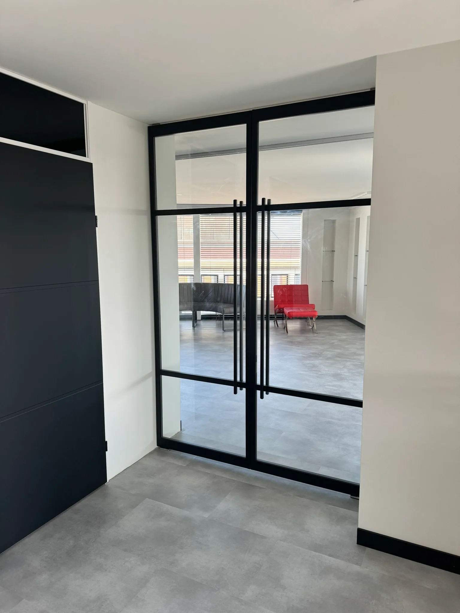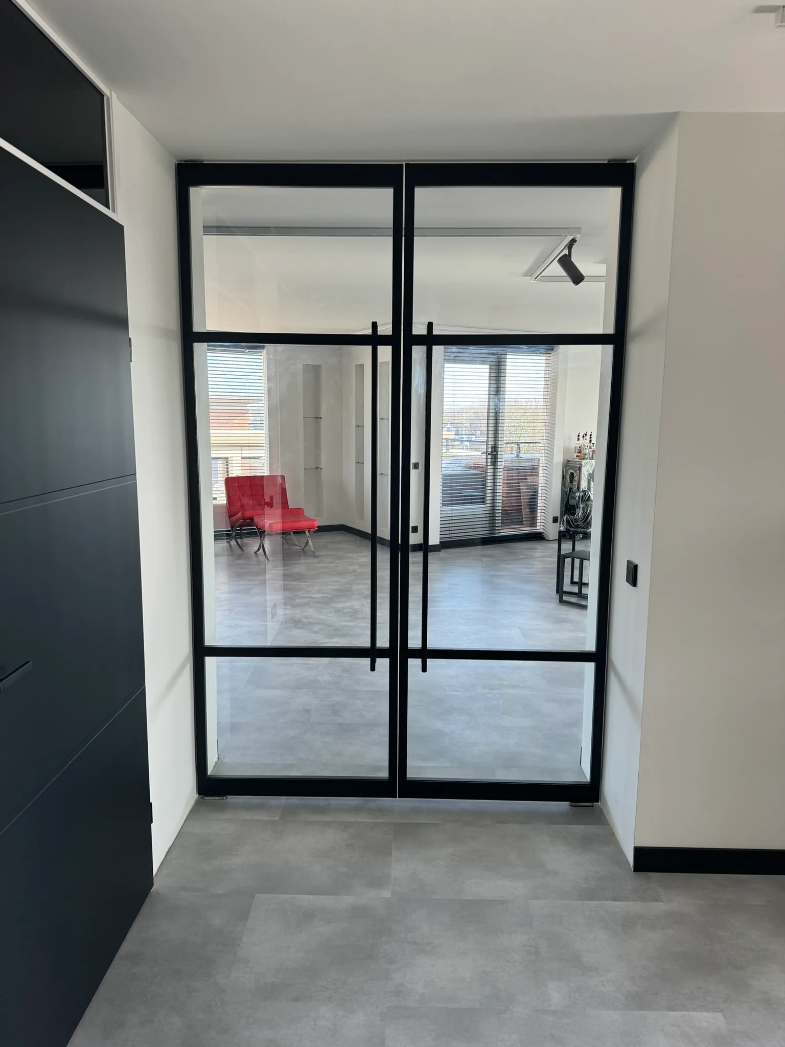 Licht en ruimte: Dankzij de grote glasvlakken blijft de ruimte open en licht, zelfs wanneer de deuren gesloten zijn.