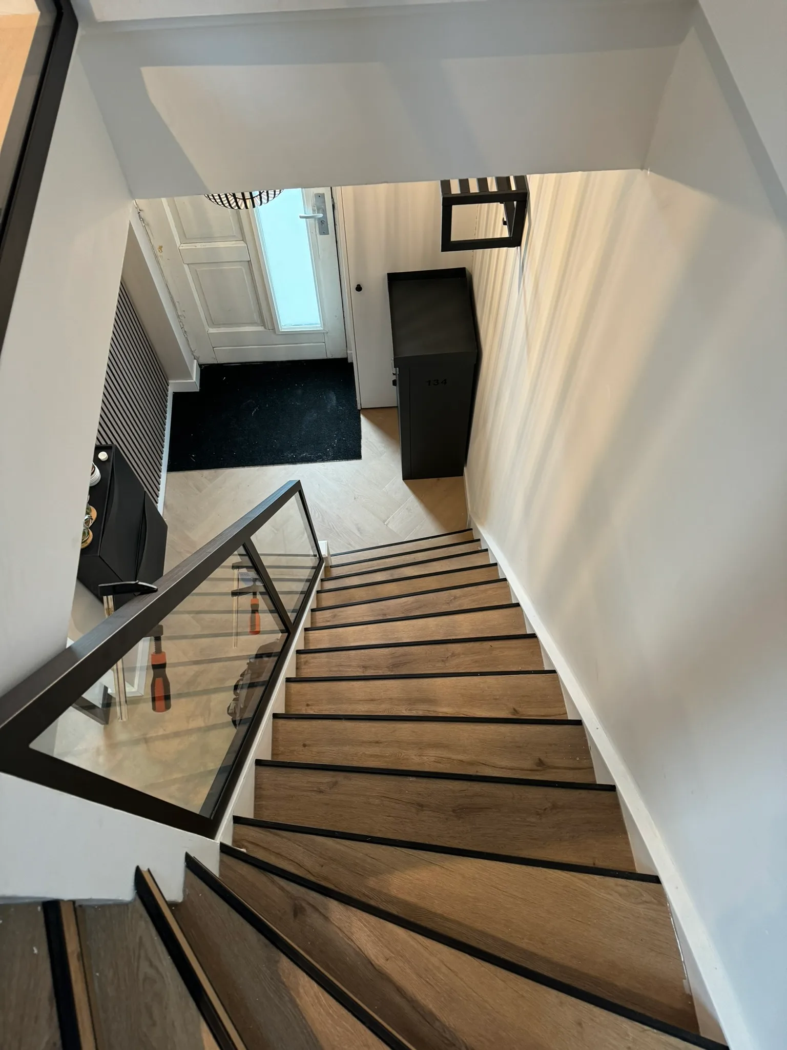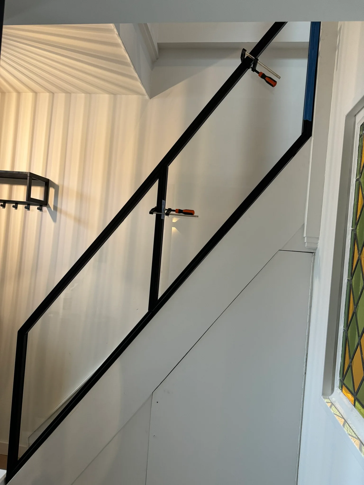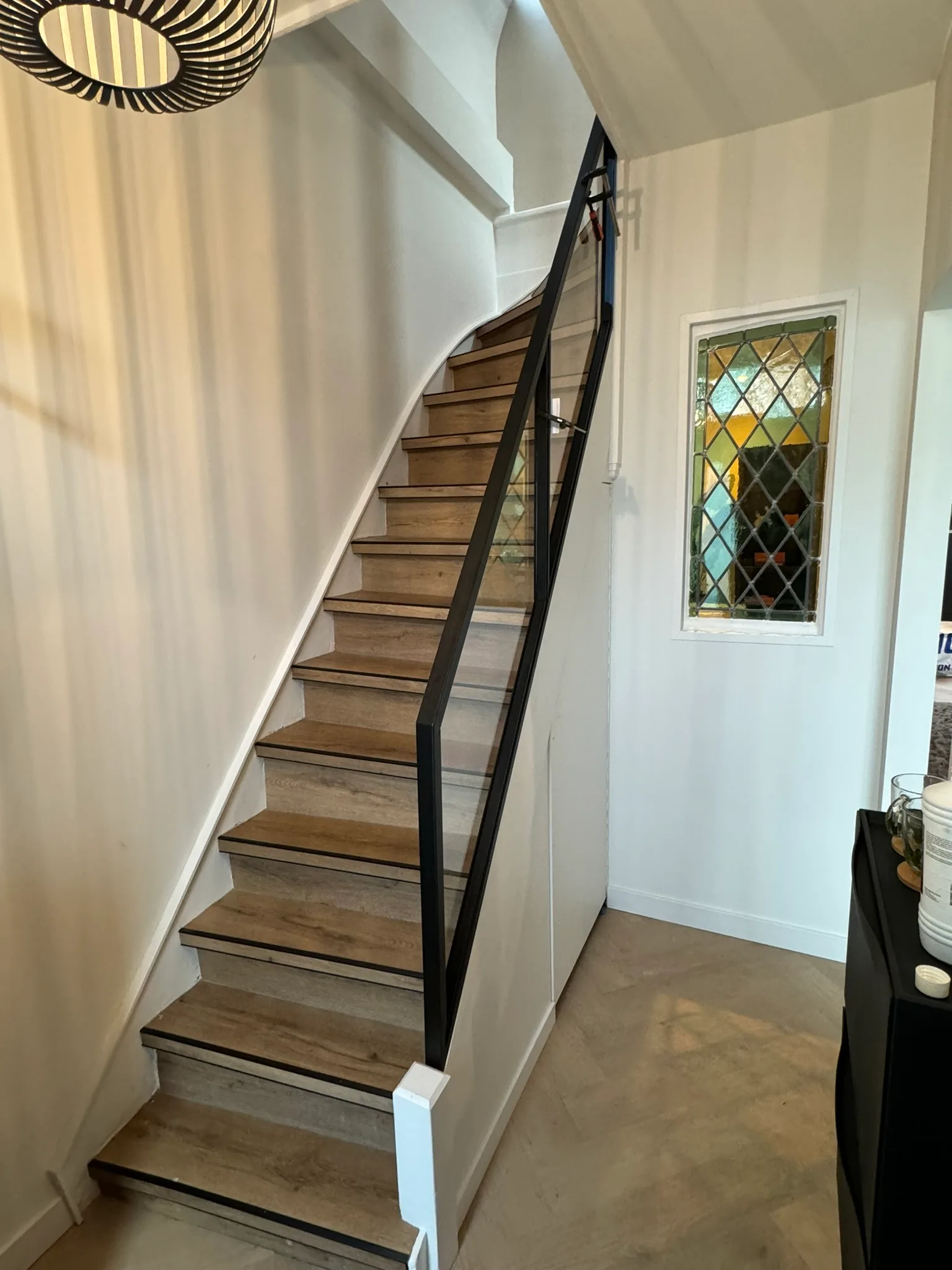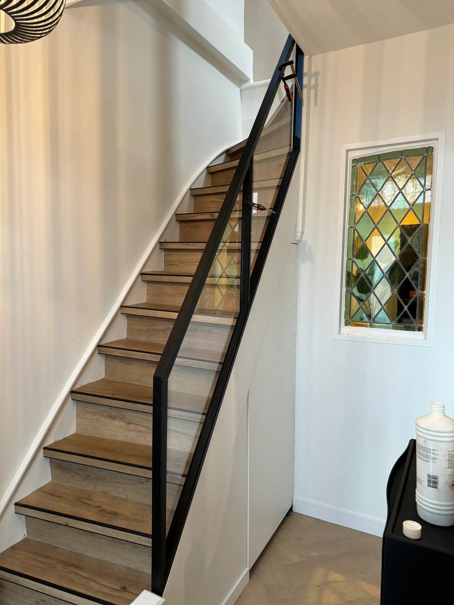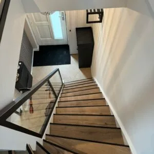 Er zijn verschillende bevestigingsopties beschikbaar, waaronder:- Puntbevestiging: Het glas wordt rechtstreeks aan de trap of vloer bevestigd met metalen klemmen of schroeven, wat een strak en zwevend effect geeft.